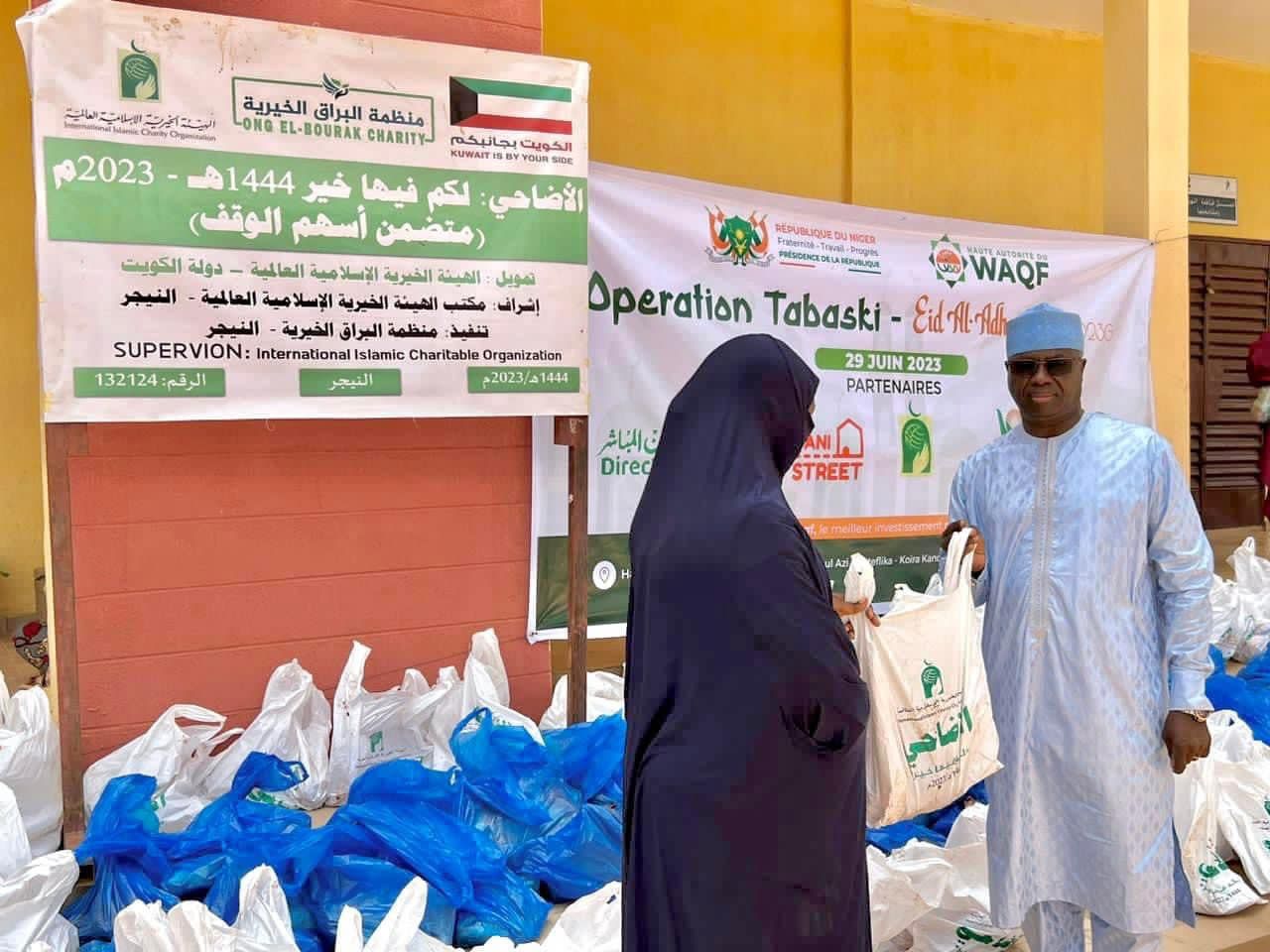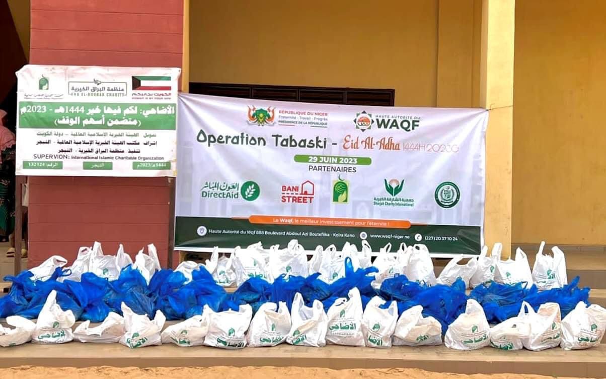 Nos vifs remerciements à nos partenaires tels que Direct Aid-Niger جمعية العون المباشر , la Fondation Islamique Internationale de Bienfaisance (FIIB), Sharjah Charity International, Bani Street et l’Ambassade de Pakistan pour leur accompagnement dans la mise à disposition des kits et à toutes les ONG et associations locales qui ont su mobiliser les bénéficiaires pour cette Opération Tabaski 2023 de la Haute Autorite du Waqf.